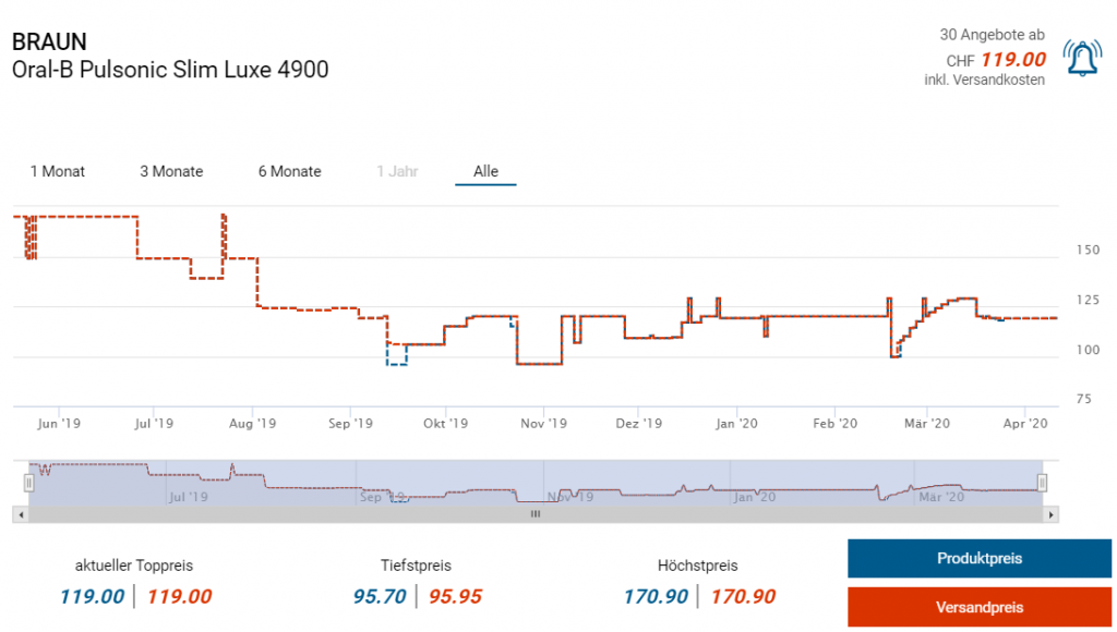 Bei Nettoshop gibts gerade dank des 15 Franken Gutscheincodes aus diesem Deal einen anständigen Deal zur elektrischen Zahnbürste Oral-B Pulsonic Slim Luxe 4900 von Braun. Im Set inkl. ist scheinbar eine 2. Zahnbürste (zumindest auf den Bildern und bei den Mitbewerbern), man kann sie zudem 30 Tage lang kostenlos testen und bei Nichtgefallen zurückschicken. Der Bestpreis lag in der Vergangenheit bei ca. 96 Franken.