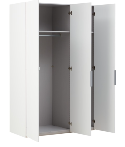 - Warendeklaration: Korpus: Spanplatte melaminbeschichtet, weiss, Front: Spanplatte melaminbeschichtet, weiss, Griff kurz alufarben, inkl. 2 Kleiderstangen und 2 Tablare