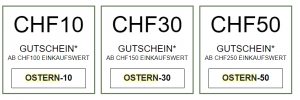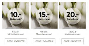 Es ist Ostern, und der Schweizer Detailhandel feiert mit. Fast kein Shop, der keine speziellen Deals anbietet. Da ich nicht für alle Onlineshops einen eigenen Deal erstellen möchte, hier eine kleine Übersicht: