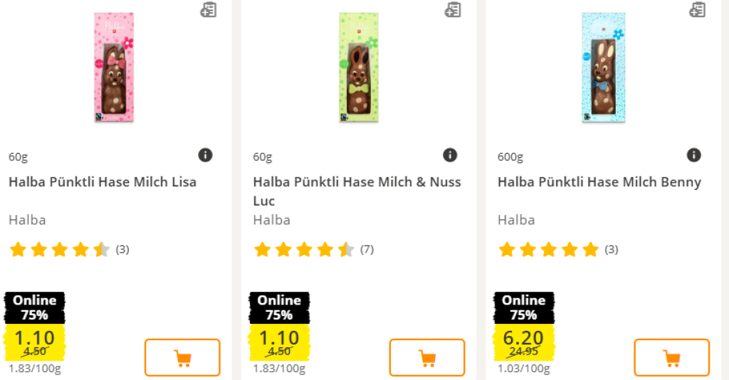 Jetzt gibt es die Oster-Schokoladen bei Coop online mit 75 % Rabatt.