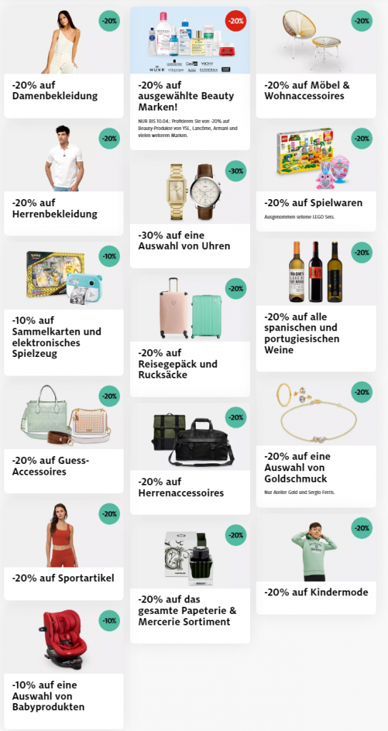 Bei Manor gibt’s bis morgen in der „Sunday Shopping“ Promotion bis zu 20% Rabatt auf einige Kategorien! Unter anderem gibt’s so auch wieder einige Lego-Sets, Reisegepäck und anderes zu interessanten Preisen. Vergesst zudem nicht, ab 100 Franken Bestellwert den Gutschein aus der Manor-Newsletter-Anmeldung anzuwenden! Mit diesem gibt’s nochmals 20 Franken Rabatt.