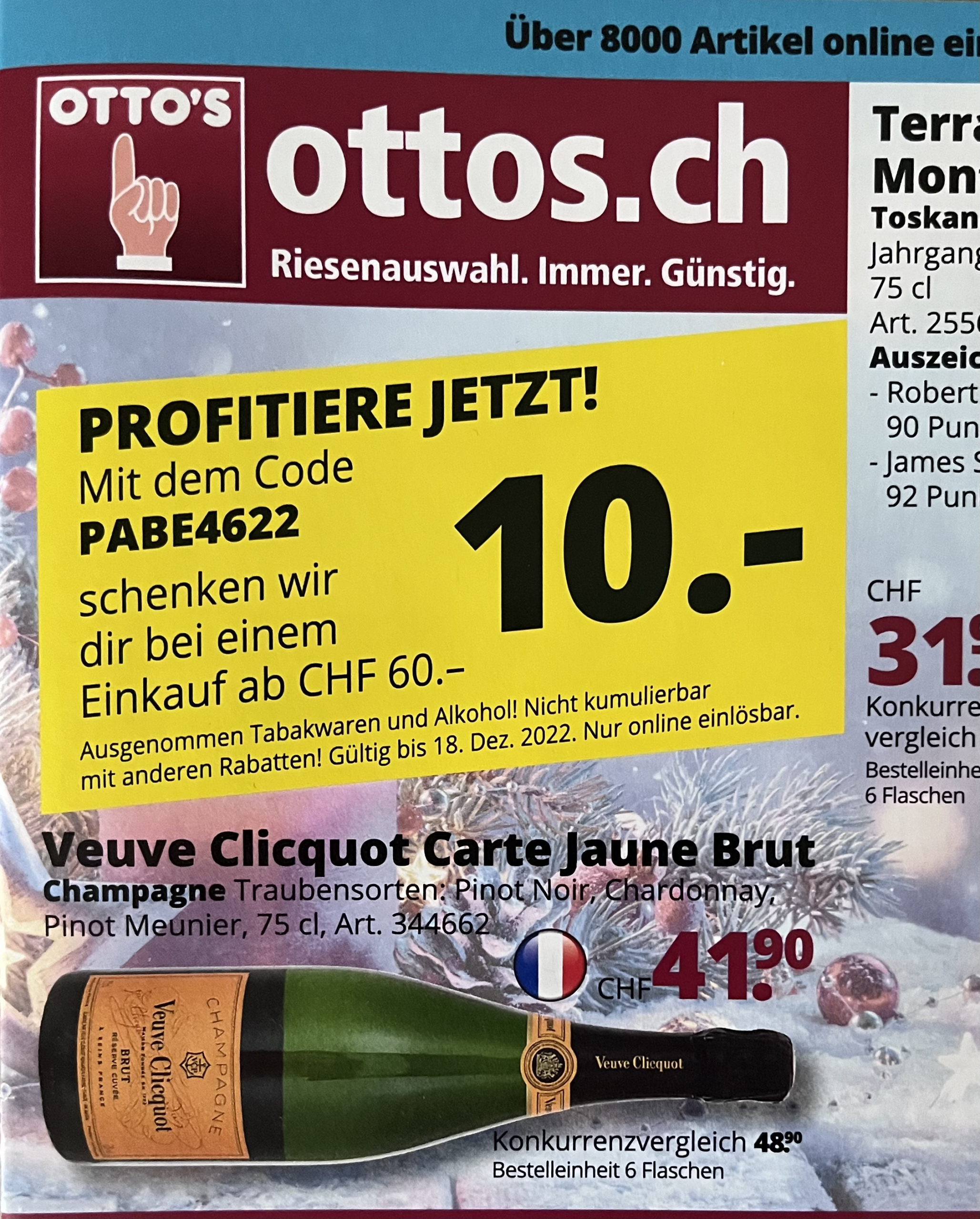 Nochmals ein Otto’s Gutschein für 10.- Rabatt ab CHF 60.- Einkaufswert mit dem Code PABE4622.