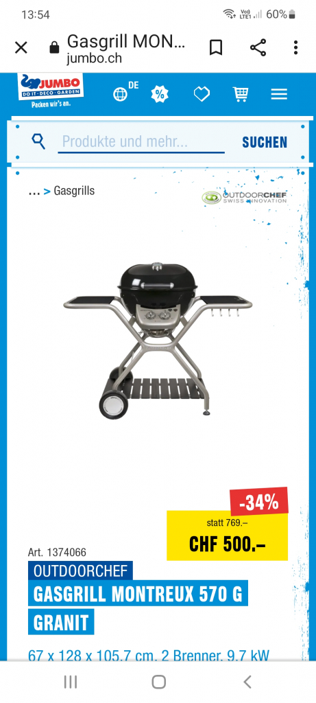 Wer ein Gasgrill von Oudoorchef sucht sollte hier zuschlagen. Bei Abhohlung in der Filliale mit Gutscheincode für sagenhafte 450.-