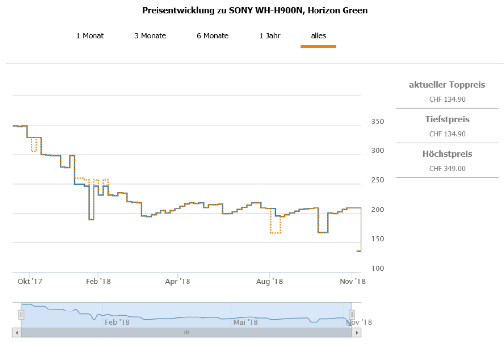 Best price über alle Farben war bislang bei 166.40 CHF, der zweitbeste Preis liegt aktuell bei 199.- CHF.