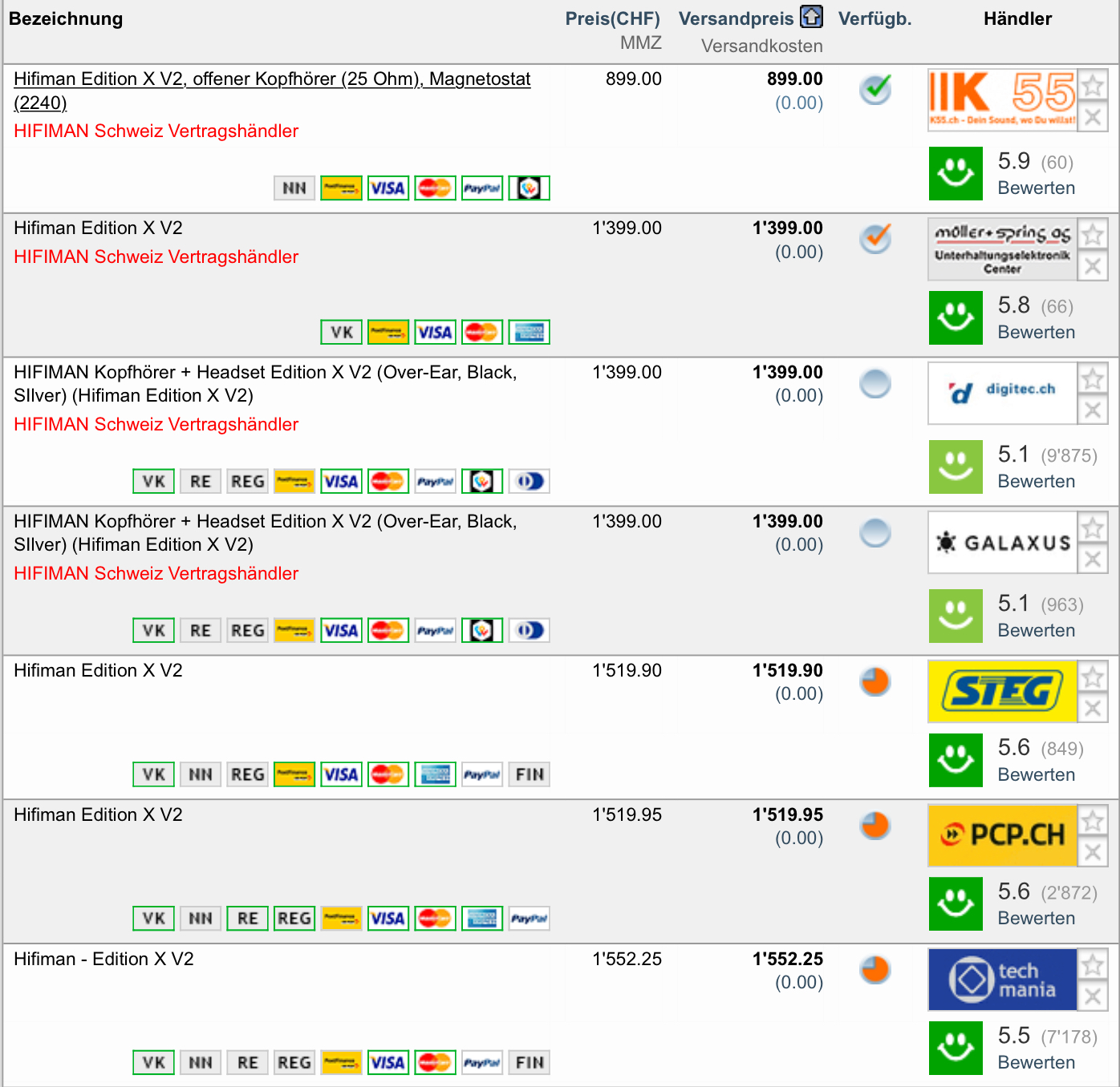 Gemäss toppreise gab es den Kopfhörer bislang nie günstiger als für 1185.02 CHF, der zweitbeste Preis liegt aktuell bei 1399.- CHF.