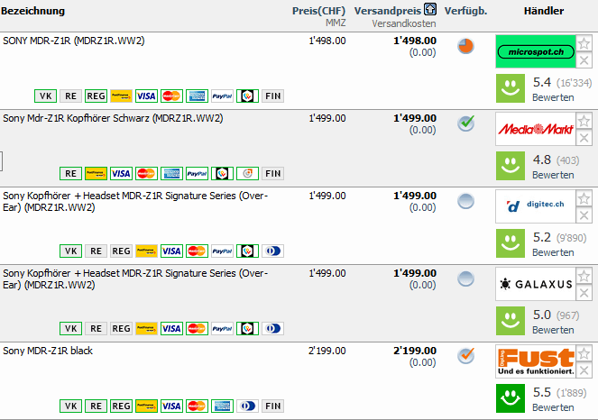 Gemäss toppreise gab es den Kopfhörer bislang nie günstiger als für 1498.- CHF, was aktuell auch der zweitbeste Preis ist.