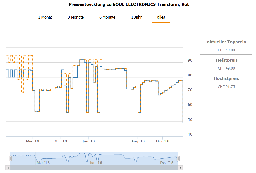 Gemäss toppreise war der bestprice bislang bei 55.90 CHF, der zweitbeste Preis liegt aktuell bei 77.90 CHF.