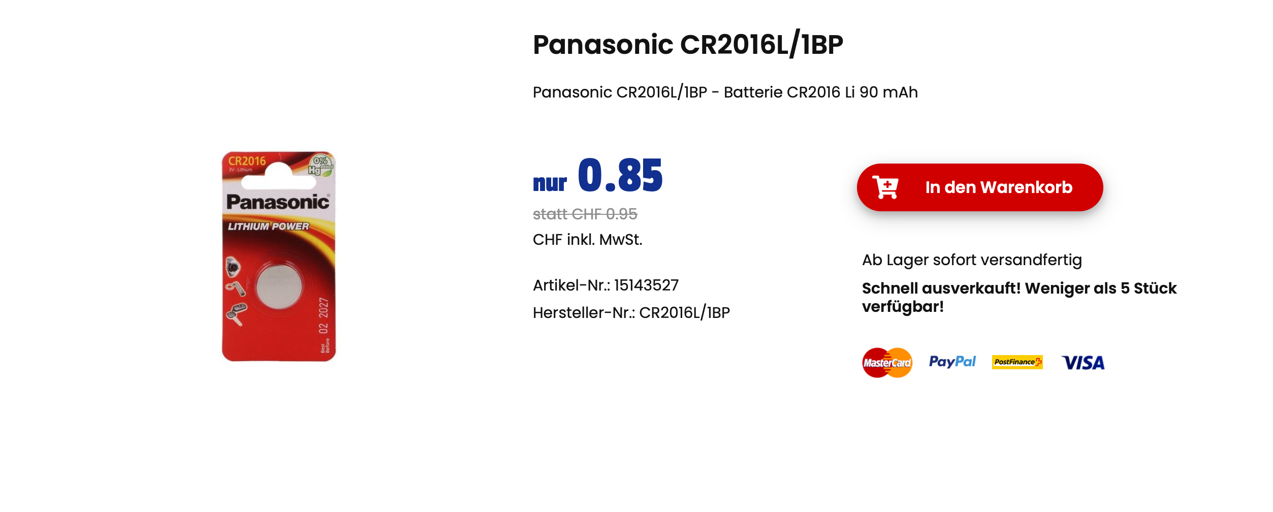 Bei ELV.ch gibts so Knopfzellen immer so günstig, zb Renata CR2016 für 1.- CHF