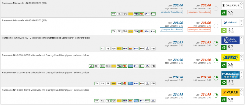 Bei galaxus gibt es die PANASONIC GD38HSGTG Mikrowelle für den neuen Bestpreis von CHF 203.-. Der vorherige Bestpreis lag bei CHF 212.- im Januar 2018. Der zweitbeste Preis beträgt CHF 234.85. Das Angebot bekommt man auch bei dem Schwestern-Shop digitec.
