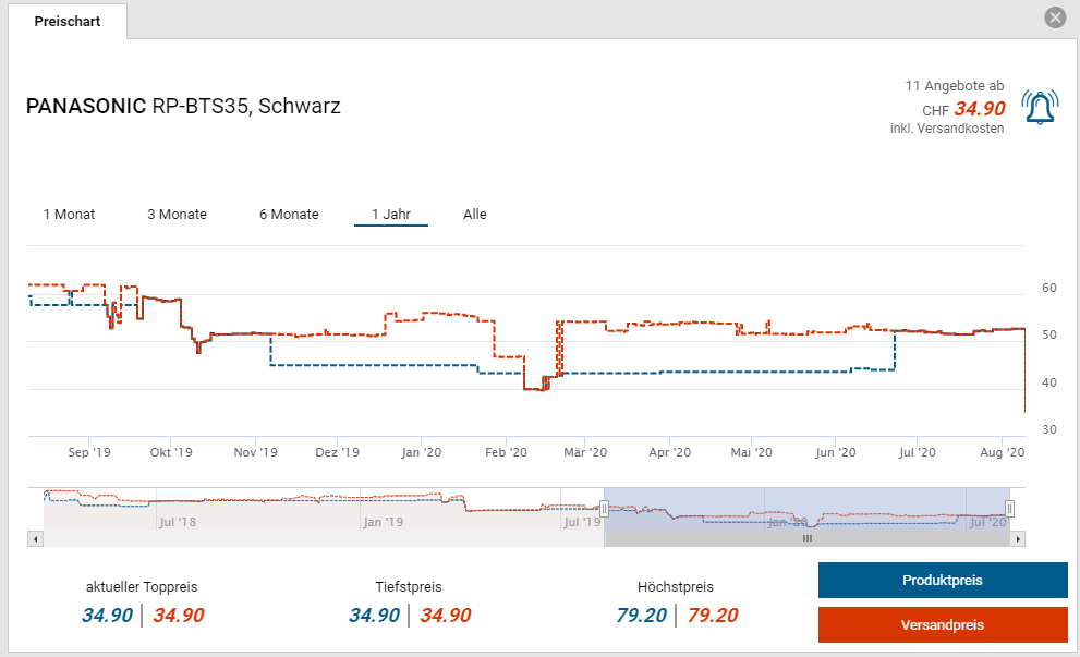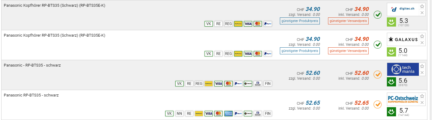 Bei Digitec und dem Partner Galaxus gibt es die PANASONIC RP-BTS35 Bluetooth Kopfhörer für den neuen Bestpreis von CHF 34.90. Der vorherige Bestpreis war CHF 39.80. Der zweitbeste Preis beträgt CHF 52.60.