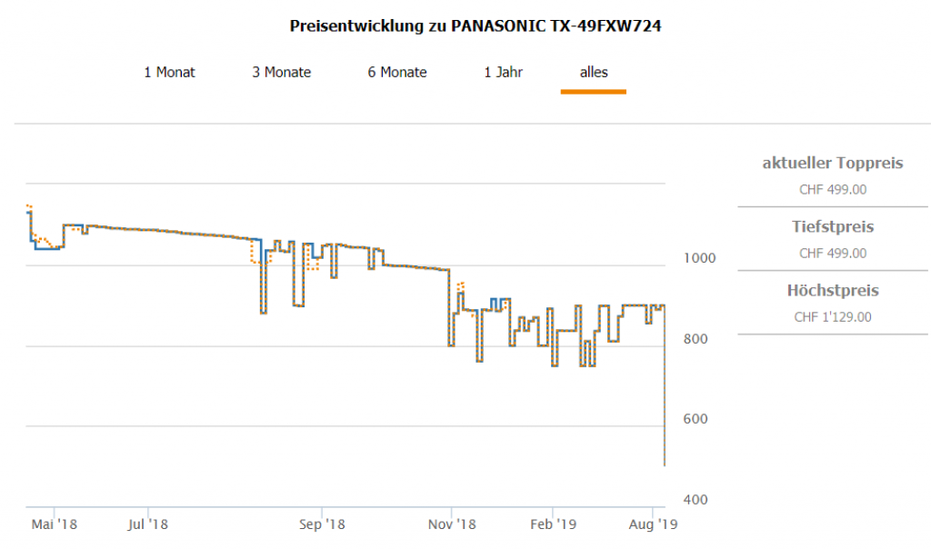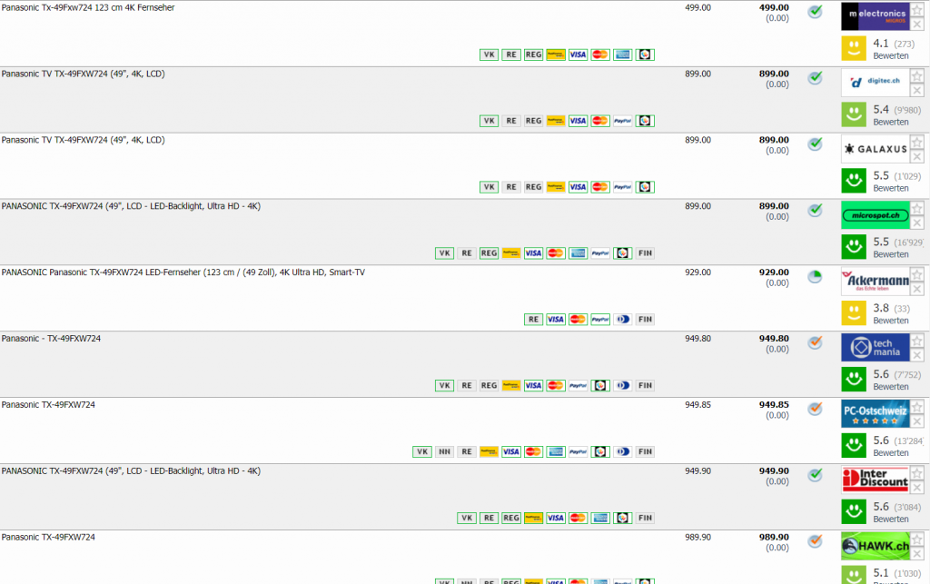 Bei melectronics gibt’s den Panasonic TX-49FXW724 123 cm 4K für CHF 499.- Zweitbester Preis laut toppreise bei CHF 899.- Bestpreis bei CHF 749.- Wenn man sich zum melectronics Newsletter anmeldet, erhält man noch einen 10.- Gutschein, der sich kombinieren lässt.