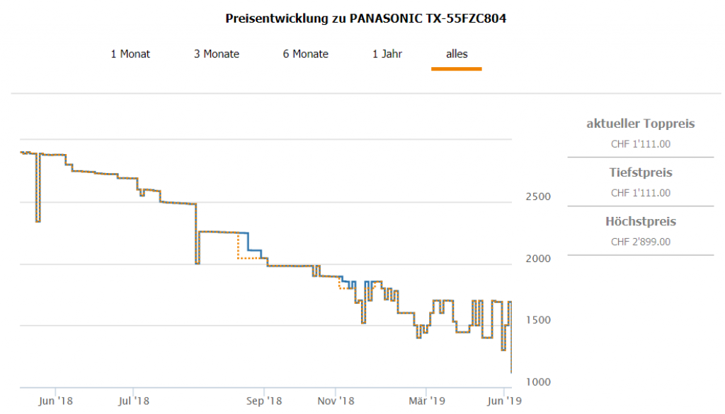 Zweitbester Preis in der Schweiz beträgt derzeit laut toppreise CHF 1689.- Bestpreis bisher war bei CHF 1299.-