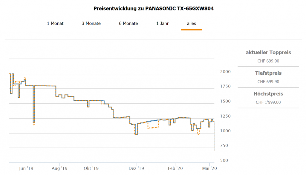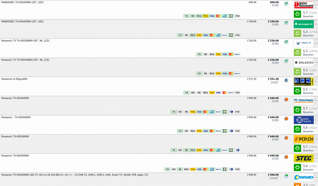 Bei Interdiscount gibt’s gerade den 65“ TV PANASONIC TX-65GXW804 für CHF 699.90 Bestpreis war laut toppreise bei CHF 976.60 Zweitbester Preis bei CHF 1199.-