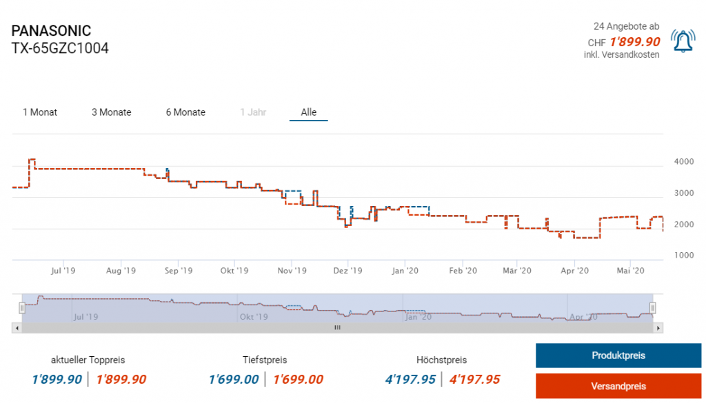 Bei Interdiscount gibts diese Woche den OLED-Fernseher von 65GZC1004 von Panasonic in Aktion. So zahlt ihr mit dem 20 Franken Gutschein knapp 1880 Franken, derzeit würde der Fernseher beim zweitgünstigsten Anbieter 2374 Franken kosten, es gab den Fernseher aber schon für wesentlich weniger, nämlich in diesem Hammer-Deal von Qoqa für CHF 1299.-