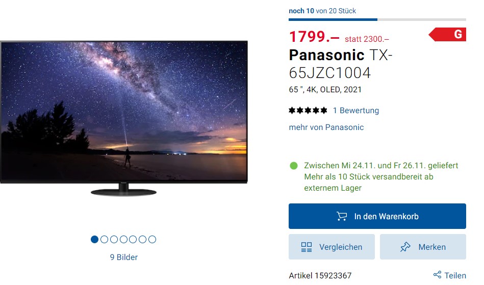 Digitec bietet den TX-65JZC1004 zum Bestpreis an.