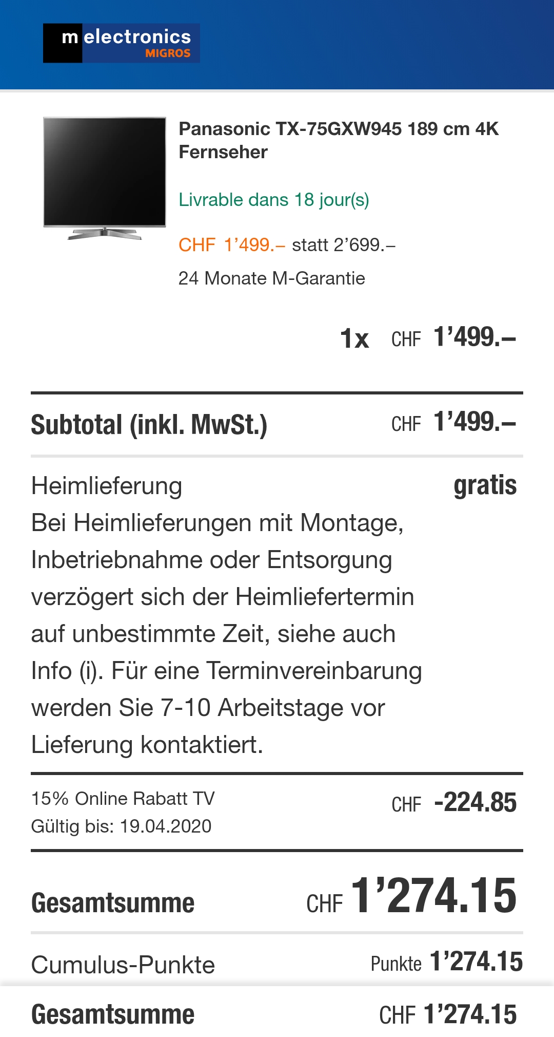 75″ Fernseher zum halben Preis bei Melectronics!