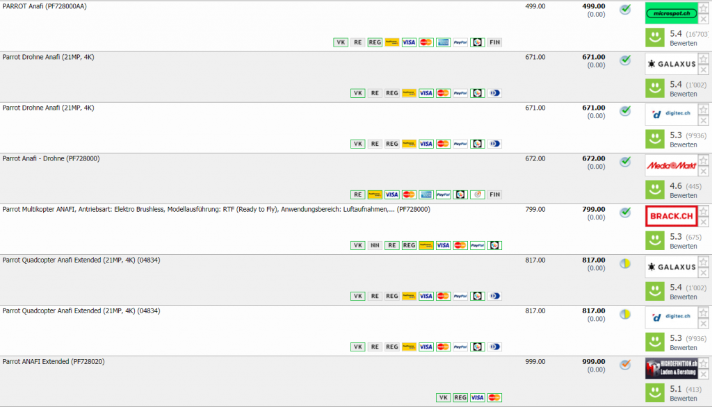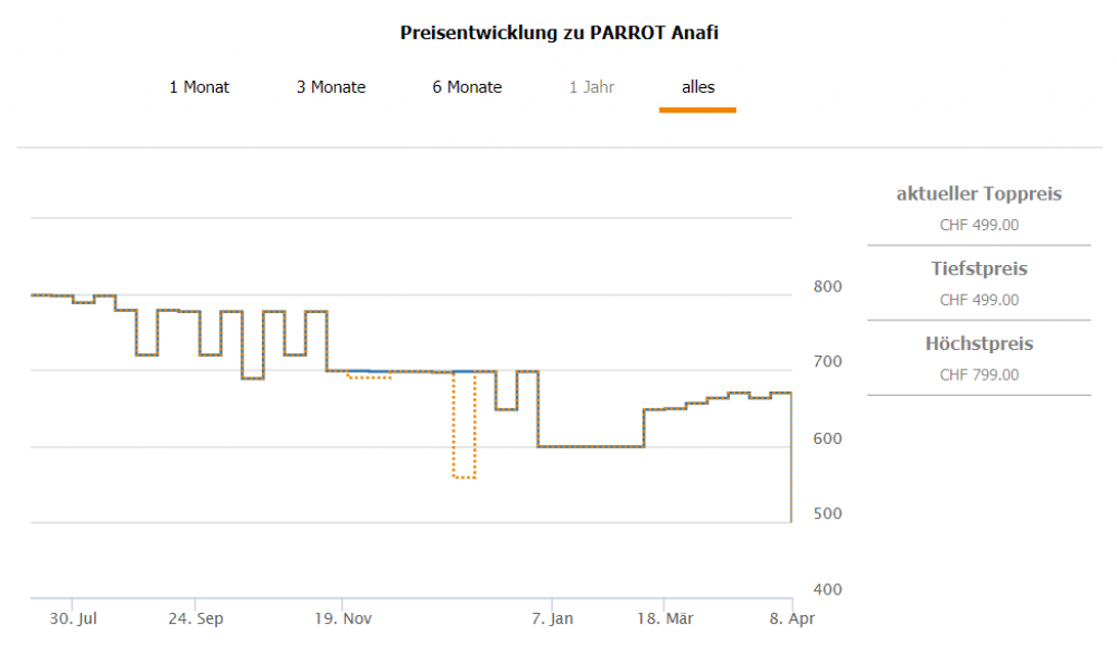 Parrot Anafi Drohne zum Preis von 499.- (zweitbester Preis 671.-)