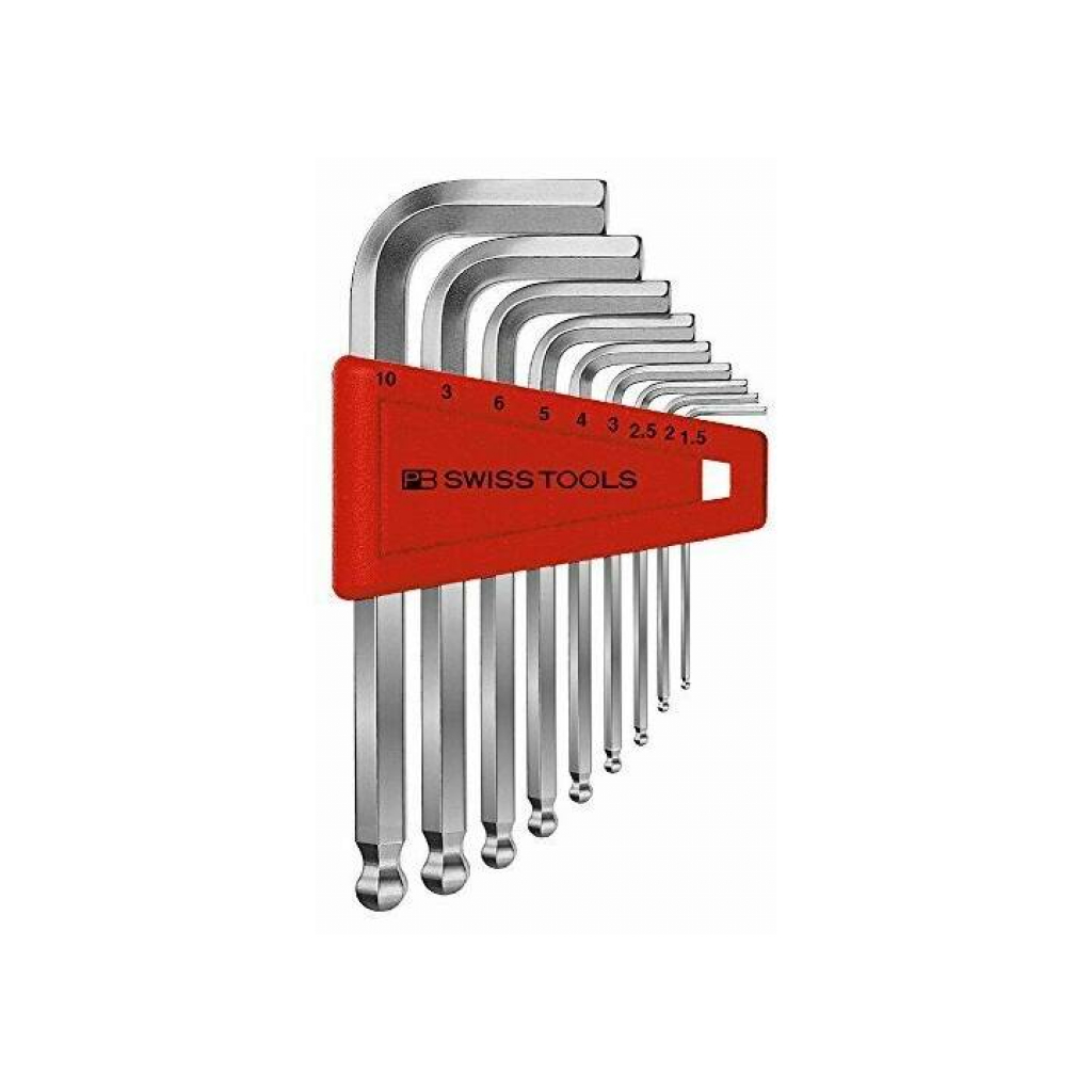 PB Swiss Tools Sechskantstiftschlüsselsatz PB, 212 H-10 (1.5 – 10mm) Chrom-Vanadium-Stahl, verchromt, mit Sechskant-Kugelkopf, für Innensechskantschrauben, kurze oder lange Ausführung, in Kunststoffhalter.