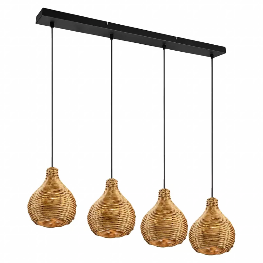 Die Pendelleuchte Sprout ist eine moderne Innenraumleuchte mit einem ansprechenden Design. Sie besteht aus Metall und einem Rattanschirm in Naturfarben, was einen schönen Kontrast schafft. Mit einer Höhe von 150 cm, einer Länge von 93 cm und einem Durchmesser von 17 cm eignet sie sich perfekt für Esszimmer und Wohnzimmer. Die Leuchte verfügt über 4 Fassungen vom Typ E14 mit einer Leistung von 30 Watt und ist dimmbar (externer Dimmer nicht im Lieferumfang enthalten). Sie wird mit 230 Volt betrieben und hat eine Schutzart von IP20. Die Pendelleuchte Sprout ist ein stilvolles und funktionales Beleuchtungselement für Ihr Zuhause.