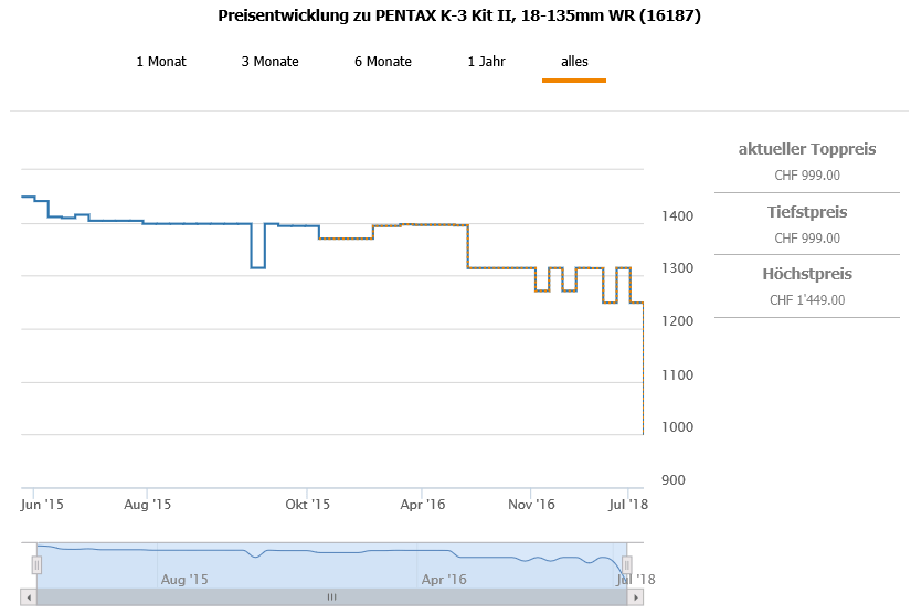 Bei brack gibt es gerade die PENTAX K-3 II als Kit mit 18-135mm WR Objektiv im Sale für 999.- CHF.