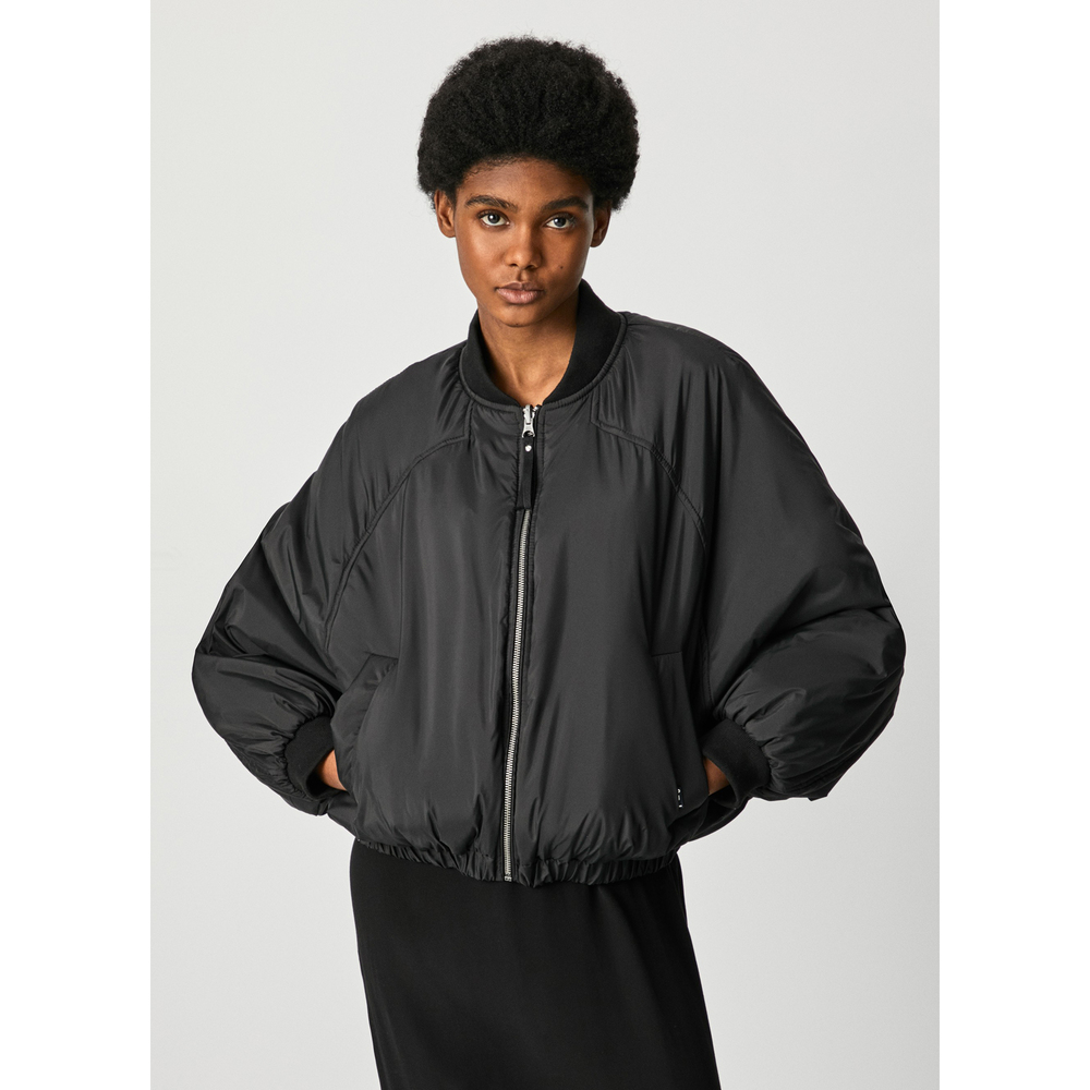 Diese modische Bomber-Jacke von Pepe Jeans ist reversibel - die eine Seite ist uni gestaltet, während die andere mit einem bunten Allover-Muster gestaltet ist. Die Jacke hat Fledermausärmel, einen Reissverschluss und zwei seitliche Eingrifftsaschen.