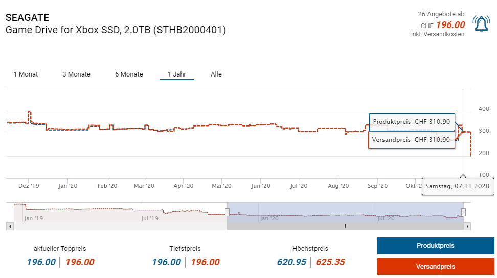 Bei Scheuss & Partner gibts derzeit die 2TB grosse SSD Seagate Game Drive for Xbox zum Preis von 196 Franken. Auch beim allseits bekannten Onlineshop ACScomputer Weber gibts die SSD für knapp 197 Franken, dort ist die Stornierung im Falle eines Preisfehler allerdings fast garantiert 😉
