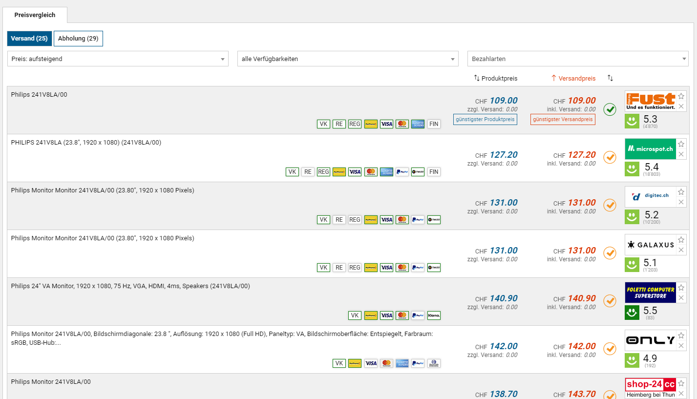 Bei Fust gibts derzeit den Office-Monitor Philips 241V8LA/00 zum neuen Bestpreis von 109 Franken. Mit dem Bon aus diesem Deal spart ihr zudem weitere 10 Franken.