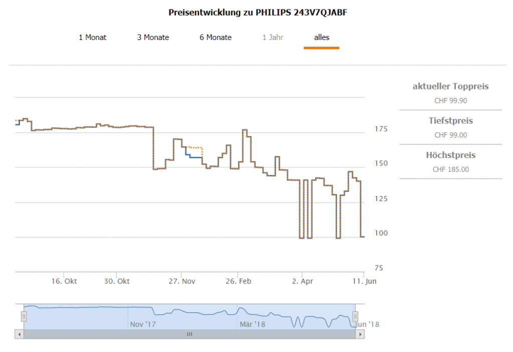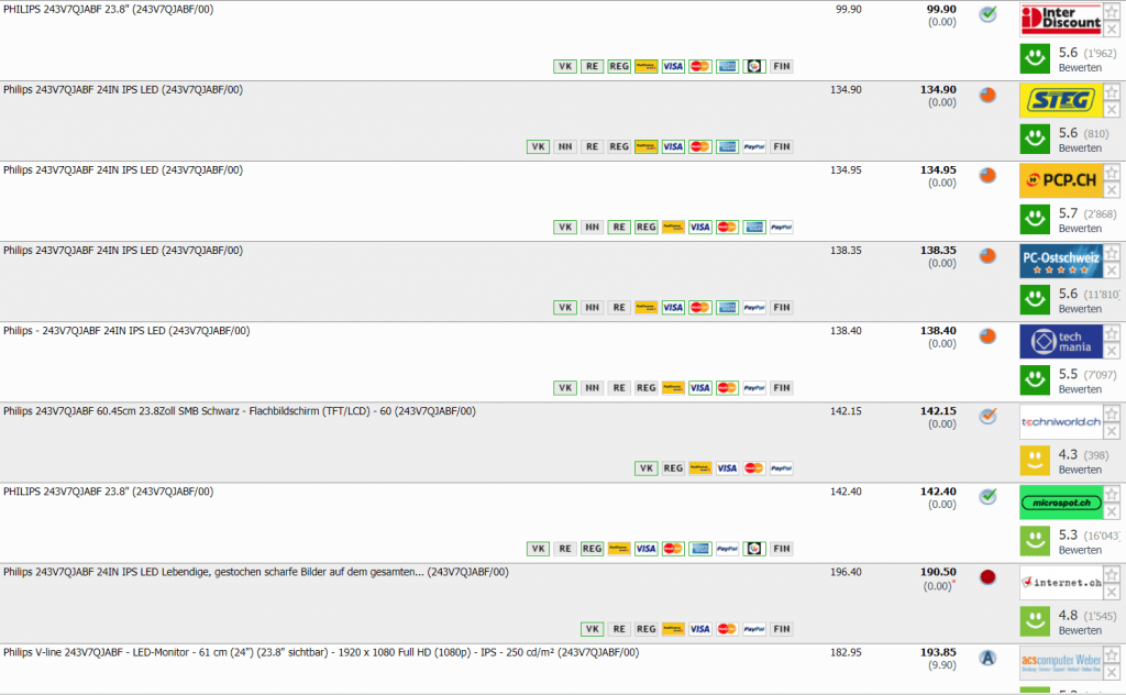 Nun hat Interdiscount den Philips 243V7QJABF 23.8″ PC-Monitor reduziert und verkauft ihn für CHF 99.90. Der zweitbeste Preis in der Schweiz liegt bei CHF 134.90 Vor zwei Monaten (und auch davor) gab es diesen Bildschirm bereits zu diesem Preis. Das Angebot gilt noch bis am 24. Juni.