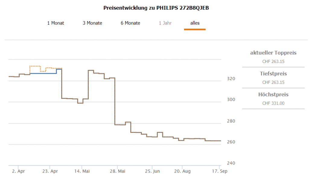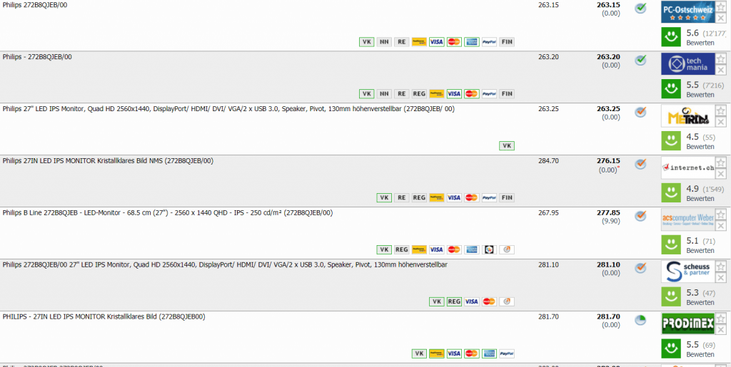 Bei digitec gibt’s gerade einen 27“ Bildschirm mit der hohen Auflösung von 2560 x 1440 Pixeln für CHF 199.- Der zweitbeste Preis der Schweiz und gleichzeitig Bestpreis liegt bei CHF 263.15.
