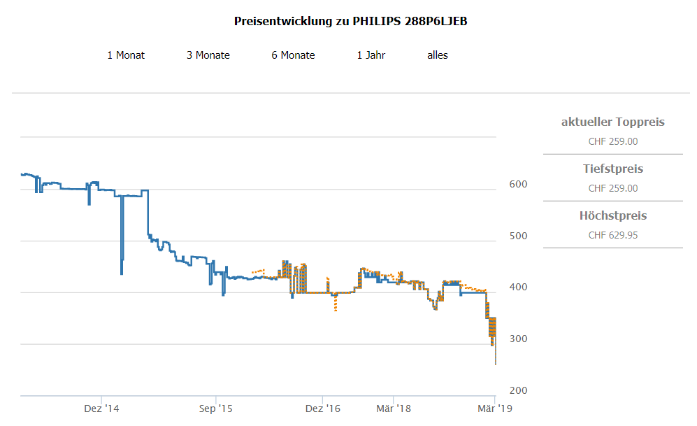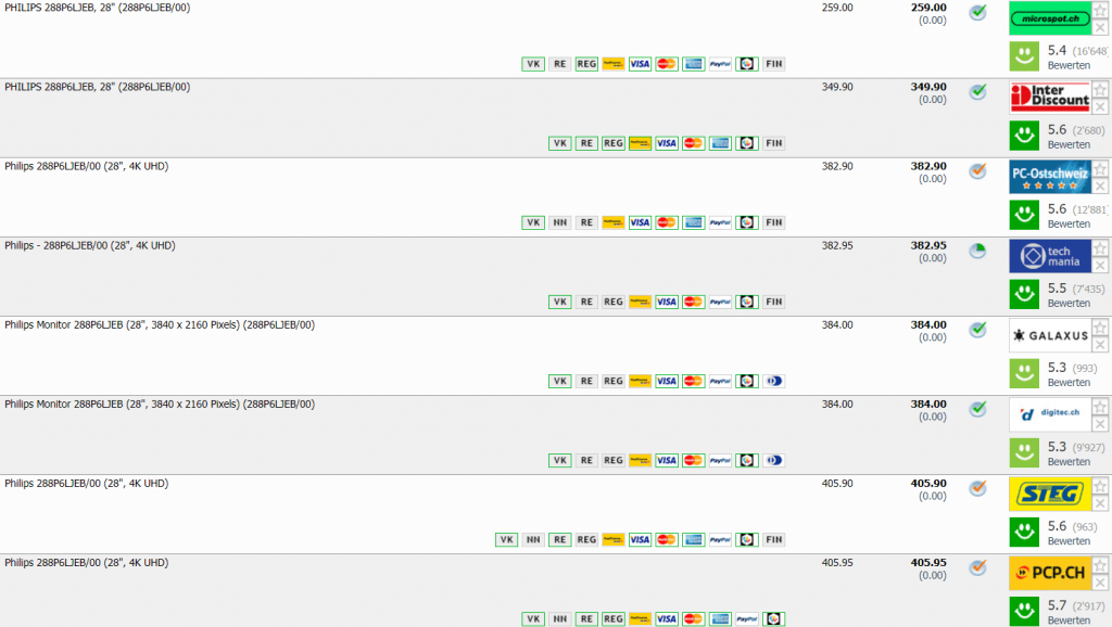 Bei microspot gibt’s den PHILIPS 288P6LJEB, 28″ 4K PC-Monitor für CHF 259.- Zweitbester Preis ist bei CHF 349.90 Bestpreis war bei CHF 314.-