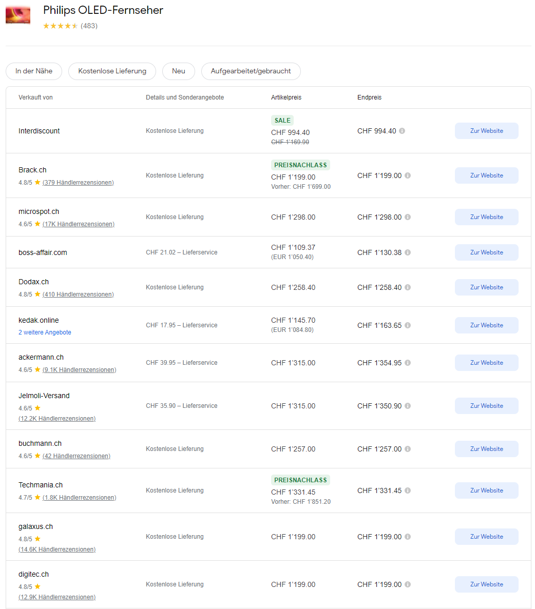 Bei Interdiscount gibt’s bis zum 21.11. den OLED-Fernseher Philips 55OLED805 zum Aktionspreis von 994.40 Franken. Das Schwestermodell, den 55OLED865 gab’s zwar auch schon günstiger, ansonsten ist dies wohl eine der besseren Gelegenheiten zuzuschlagen.
