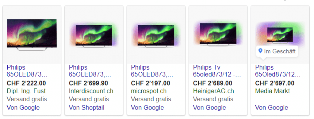 Bei Interdiscount gibt’s gerade im Tagesangebot den PHILIPS 65OLED873, OLED Fernseher mit 65″ Bildschirmdiagonale für CHF 1’999.90. Mit dem Gutscheincode HFWID10 wird’s noch einmal 10.- günstiger. Laut toppreise gab es den TV nie günstiger als CHF 2’199.- was gleichzeitig auch der zweitbeste Preis ist. Leider sind bei toppreise nicht alle Shops erfasst, die grossen fehlen zu diesem TV. Die sind laut Google Shopping aber alle deutlich teurer: