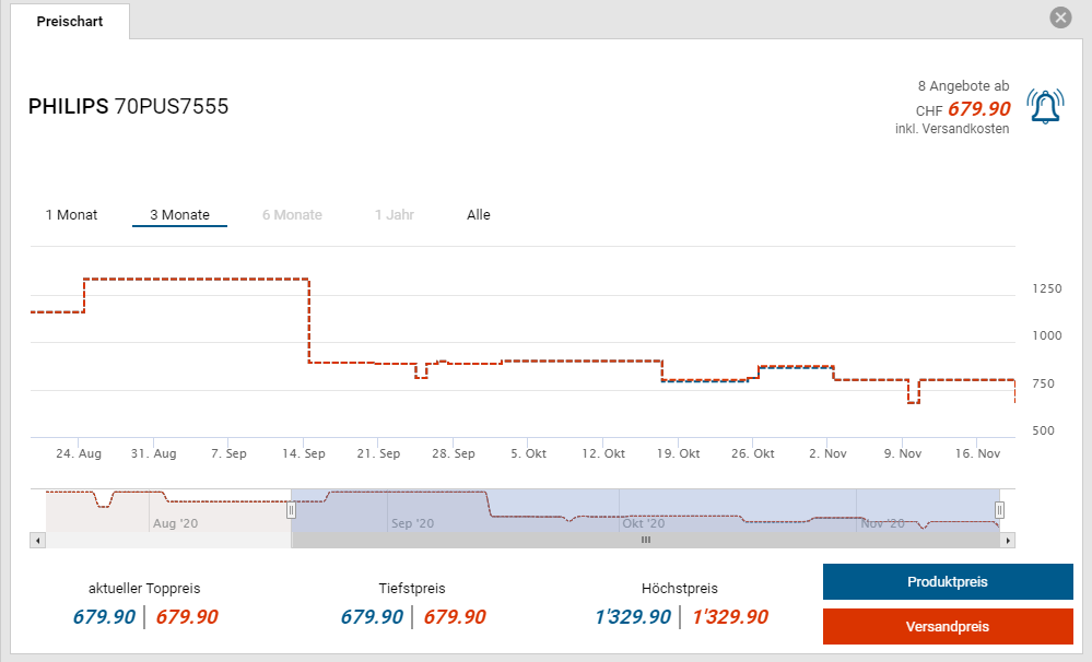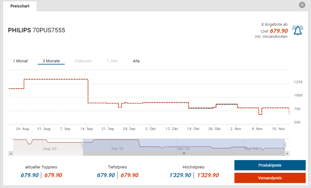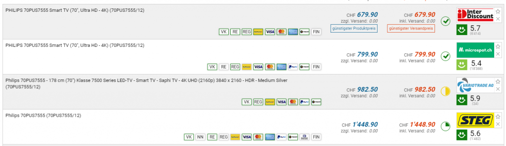 Bei Interdiscount gibt es den PHILIPS 70PUS7555 Smart TV für den Bestpreis von CHF 679.90. Diesen Bestpreis gab es schon einmal vor 2 Wochen. Der zweitbeste Preis beträgt CHF 799.-.