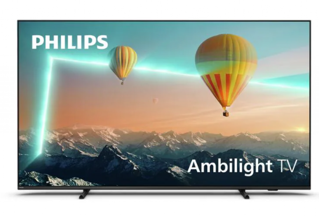 - 3-seitiges Ambilight – LED-Lichter am Rand des Fernsehers leuchten und wechseln die Farbe in perfekter Synchronisierung mit den Farben auf dem Bildschirm