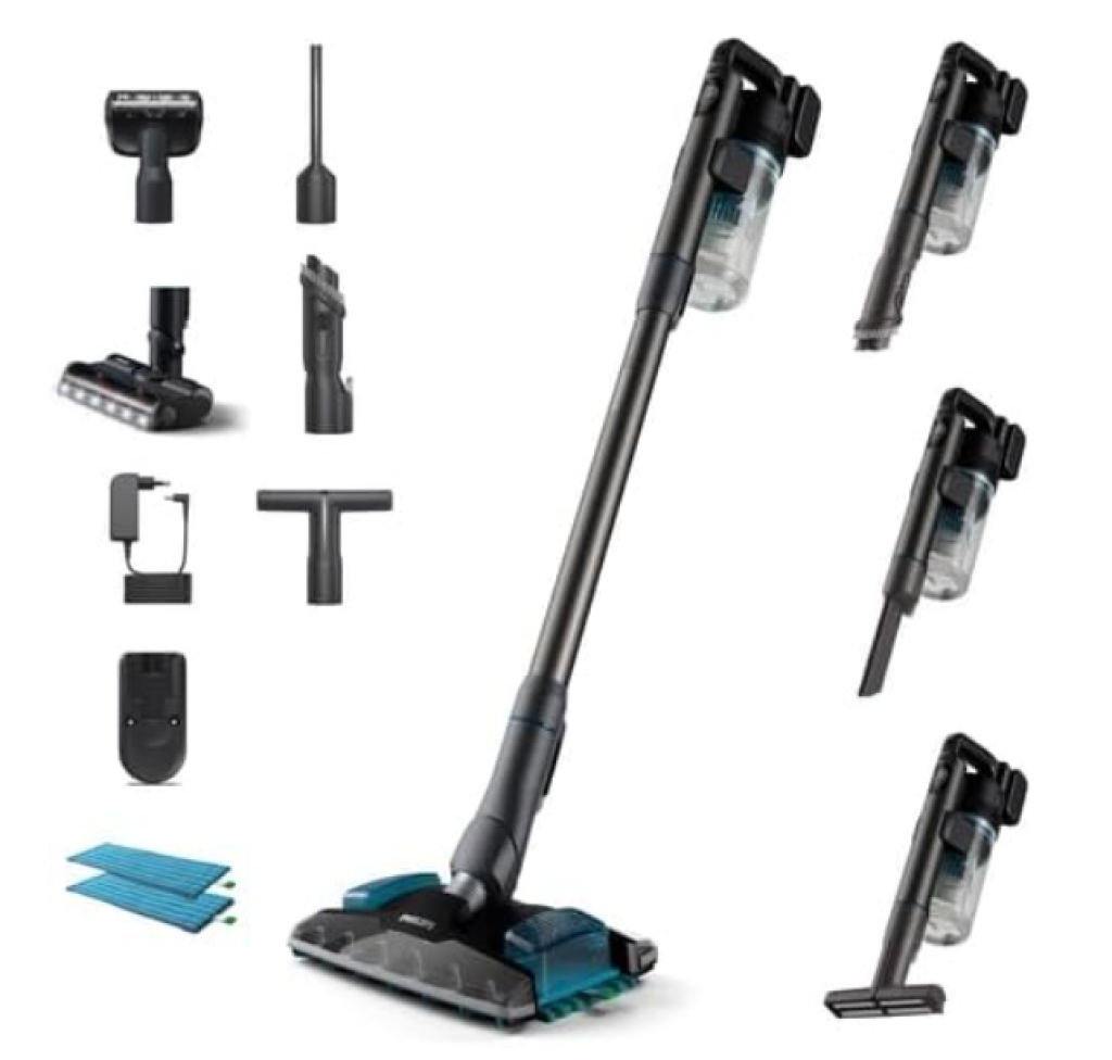 - Max. Vielseitigkeit durch Handstaubsauger, LED- und Aqua-Zubehör: Sauge Haare von weichen Oberflächen mit der Tierdüse oder nutze Zubehör mit LED. Mit der Aqua-Düse saugst und wischst du zugleich