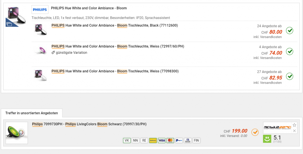 In der Schweiz kostet die Tischleuchte ab 74 Franken, wenn es der gleiche Artikel ist. Bin etwas verwirrt, weil es ein anderes Bild hat.
