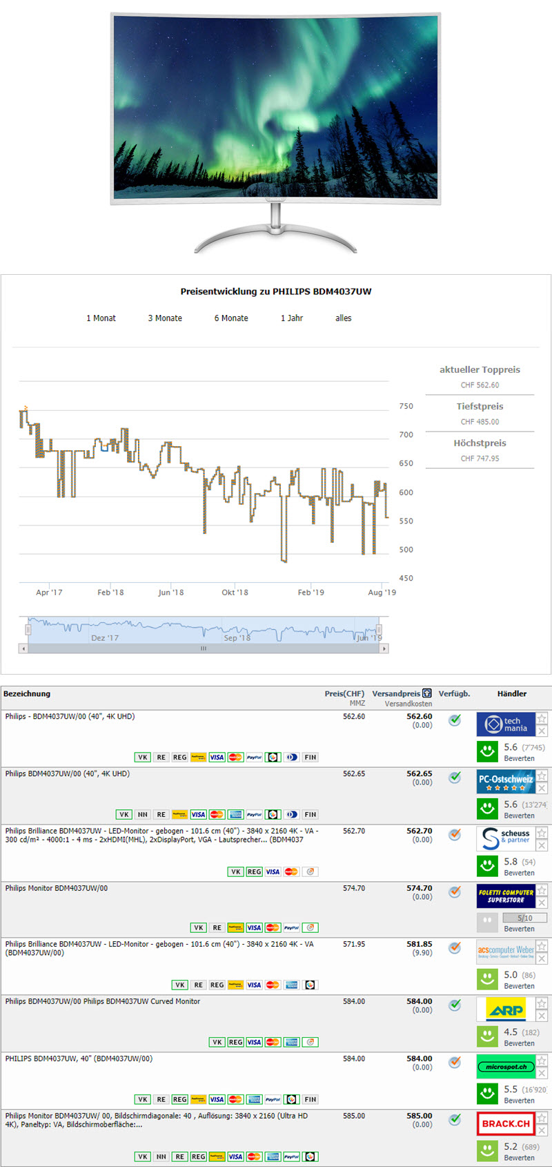 Im Tagesdeal von Digitec gibt es momentan total 80 Stück des Philips Brilliance 40″ Curved Monitor BDM4037UW/00 (3840 x 2160 Pixels) zum Bestpreis von CHF 399.-.