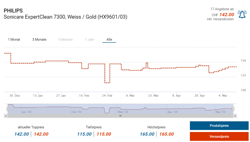 Bei amazon.it und .de kriegt ihr derzeit die elektrische Zahnbürste ExpertClean 7300 von Philips wahlweise im Einzel- oder Doppelpack zum guten Kurs. Für die einzelne Zahnbürste ist es laut toppreise sogar ein neuer Bestpreis (da lag dieser in der Vergangenheit bei 115 Franken, das Doppelpack gabs schon für 175).