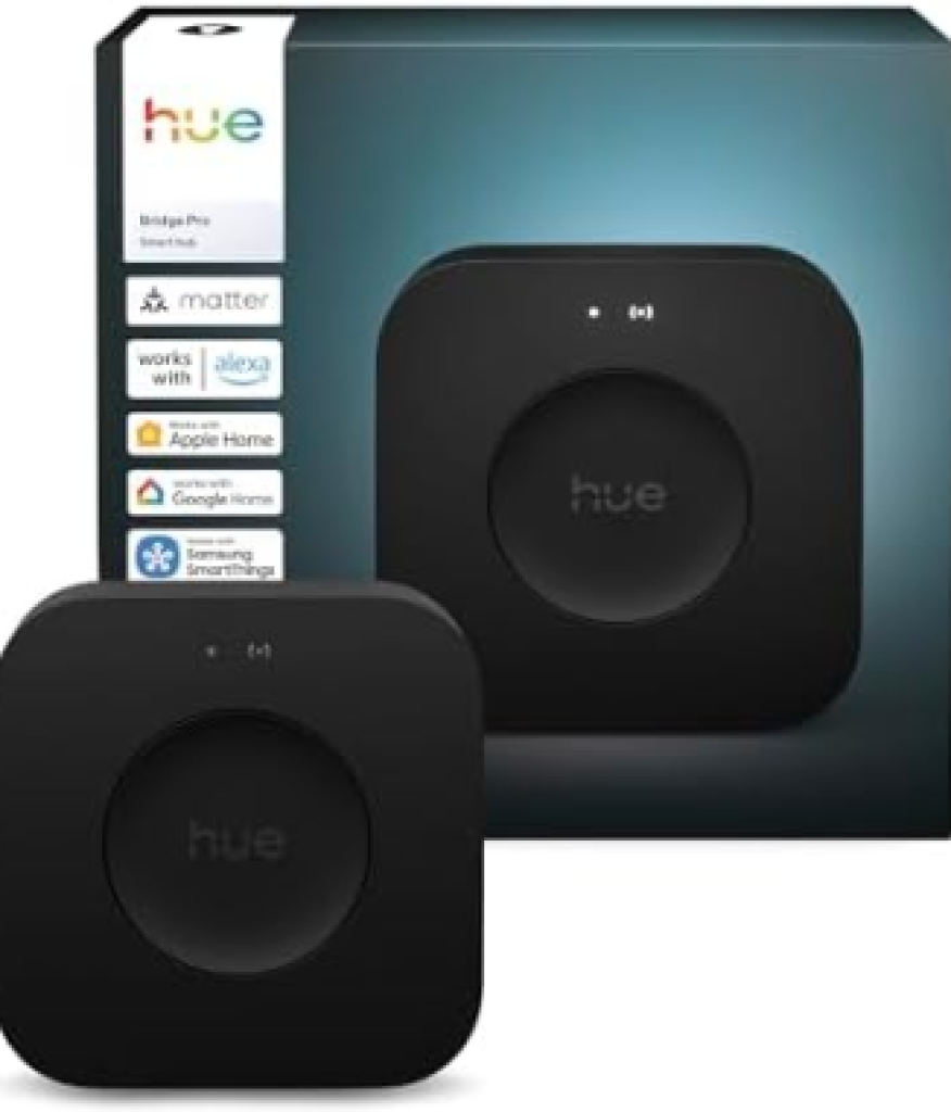 Die Philips Hue Bridge Pro ist das intelligente Steuerzentrum für dein Hue Smart Home Beleuchtungssystem. Sie ermöglicht eine ultraschnelle Reaktionszeit dank des neuen Hue Chip Pro mit 1.7 GHz Quad-Core CPU und bietet Platz für über 150 Lampen und 50 Zubehörteile. Mit MotionAware verwandeln sich deine Lampen in Bewegungssensoren, die automatisch das Licht einschalten, wenn Bewegung erkannt wird. Die Bridge Pro schützt deine Daten mit fortschrittlichen Sicherheitsfunktionen und bietet flexible Anschlussmöglichkeiten, inklusive WLAN und USB-C. So kannst du dein Smart Home Lichtsystem komfortabel und sicher von überall steuern
