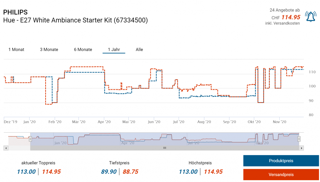 Bei microspot gerade im Cyber Week Sale. Kein Bestpreis, aber doch interessant. Die PHILIPS LED Birne HUE Starter Kit White Ambiance BT (E27, ZigBee, Bluetooth, 8.5 W) gibt’s für CHF 99.95 Zweitbester Preis beträgt CHF 114.95