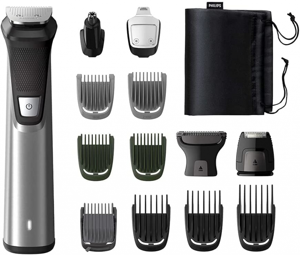 - Lieferumfang: Series 7000 Multigroom, 14 Tools, Reinigungsbürste, 8 Kämme, Trimmer, Ladekabe