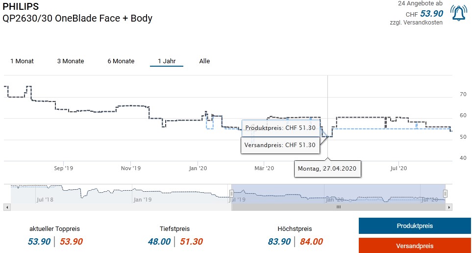 Bestpreis. Der Apparat scheint recht beliebt zu sein. Er schneide nicht so nah wie ein Nassrasierer, aber sei gnädiger zur Haut (weniger Hautirritationen).