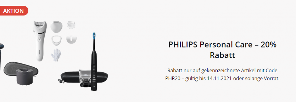 20% Rabatt auf viele PHILIPS Personal Care Produkte bei microspot mit dem Code: PHR20 . Gültig bis 14.11.2021 oder solange Vorrat.