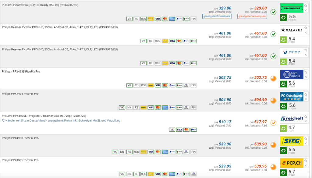 Bei microspot im Tagesdeal gibt’s den PHILIPS PicoPix Pro Beamer für CHF 329.- Bestpreis bisher war bei CHF 399.- Der zweitbeste Preis beträgt CHF 461.-