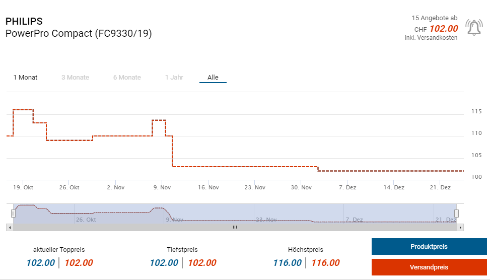 Bei nettoshop gibts zurzeit den beutellosen Staubsauger FC9330/19 von Philips zum Preis von 111 Franken. In Kombi mit dem 20 Franken Bon ergibt sich allerdings ein (neuer) Bestpreis von 91 Franken, das zweitgünstigste Angebot gibts ab 102 Franken.