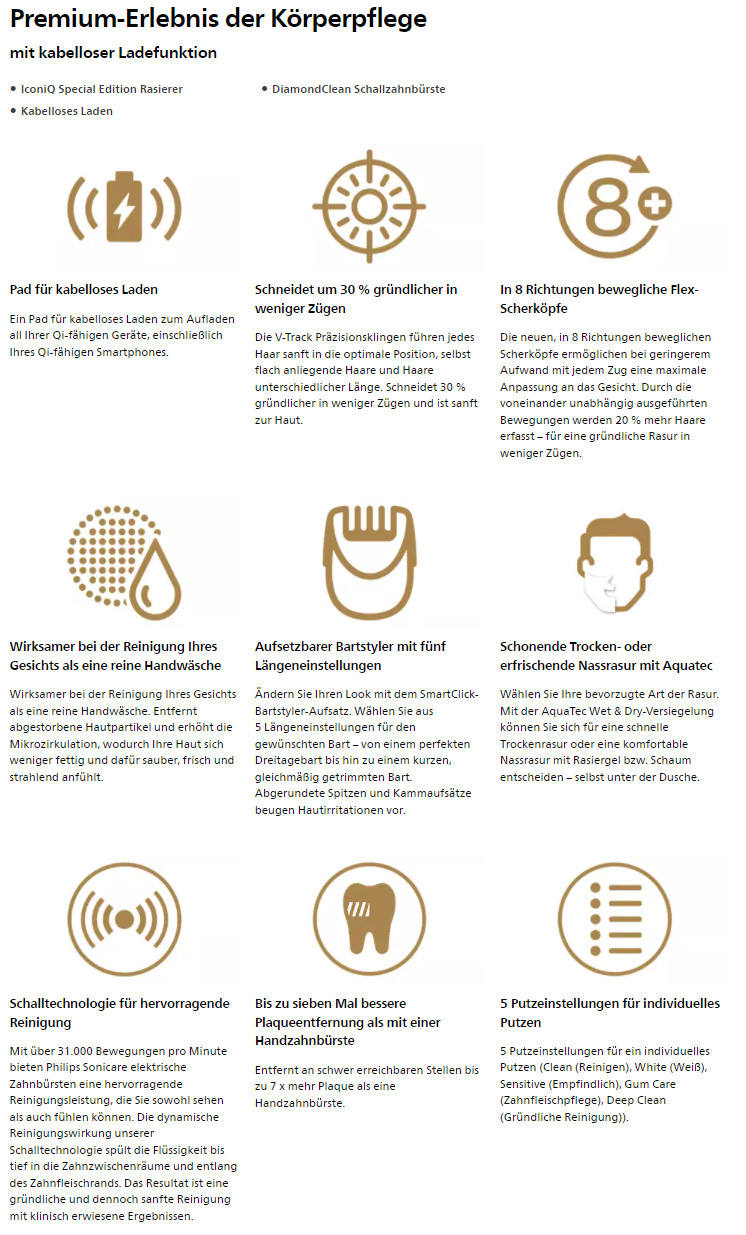 Im Philips Shop gibt’s derzeit das Herren-Premiumpflegeset S8880/86 zum Aktionspreis von 399.90 Franken. Der Originalpreis soll dabei stolze 699.99 Franken betragen… Allerdings finde ich auch schon die knapp 400 Franken recht viel dafür. Da kann man nur hoffen, dass der Rasierer das Geld wirklich wert ist 😉 Die Zahnbürste kann man wohl bei ca. 150 Franken Wert einordnen.