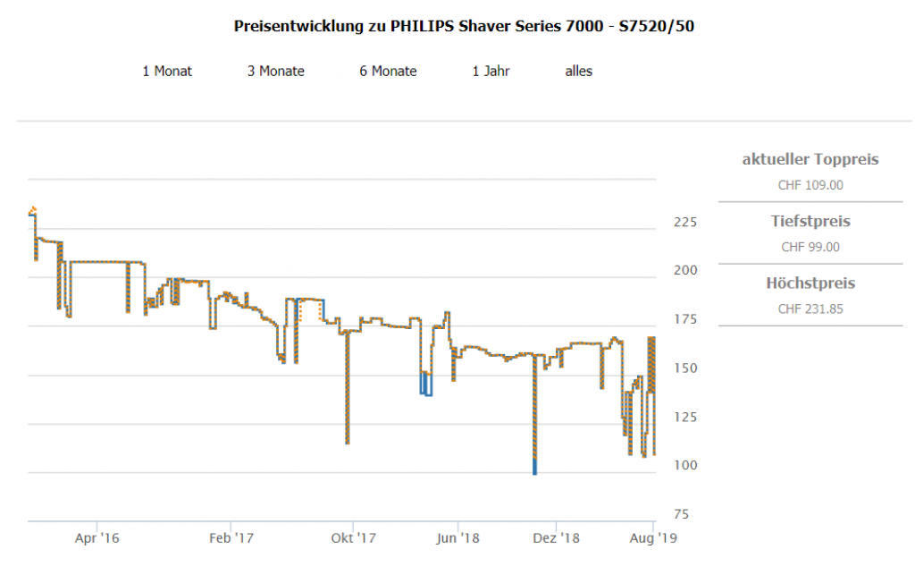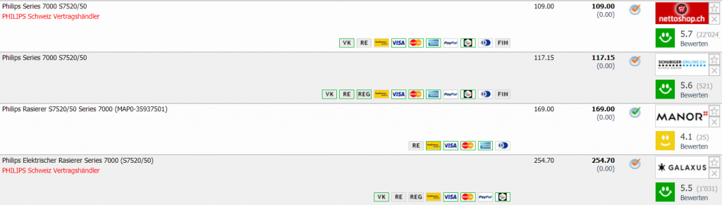 Bei nettoshop erhält man gerade den Philips Series 7000 S7520/50 Rasierer für CHF 89.- wenn man den Gutscheincode VISNET-20-1907 beim Checkout eingibt. Bisheriger Bestpreis war bei CHF 99.- Zweitbester Preis im Moment beträgt CHF 117.15