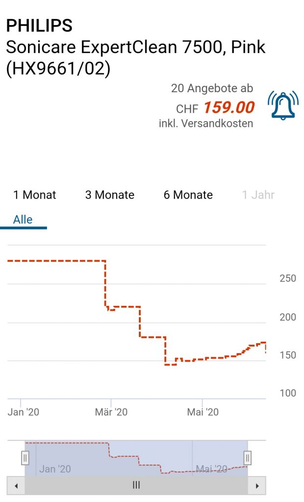 Bei nettoshop gibts derzeit elektrische Zahnbürste Sonicare ExpertClean HX9661 in Aktion. So zahlt ihr mit dem 15 Franken Gutschein am Schluss noch 144 Franken, der zweitgünstigste Preis liegt laut toppreise bei CHF 164.- bei galaxus.