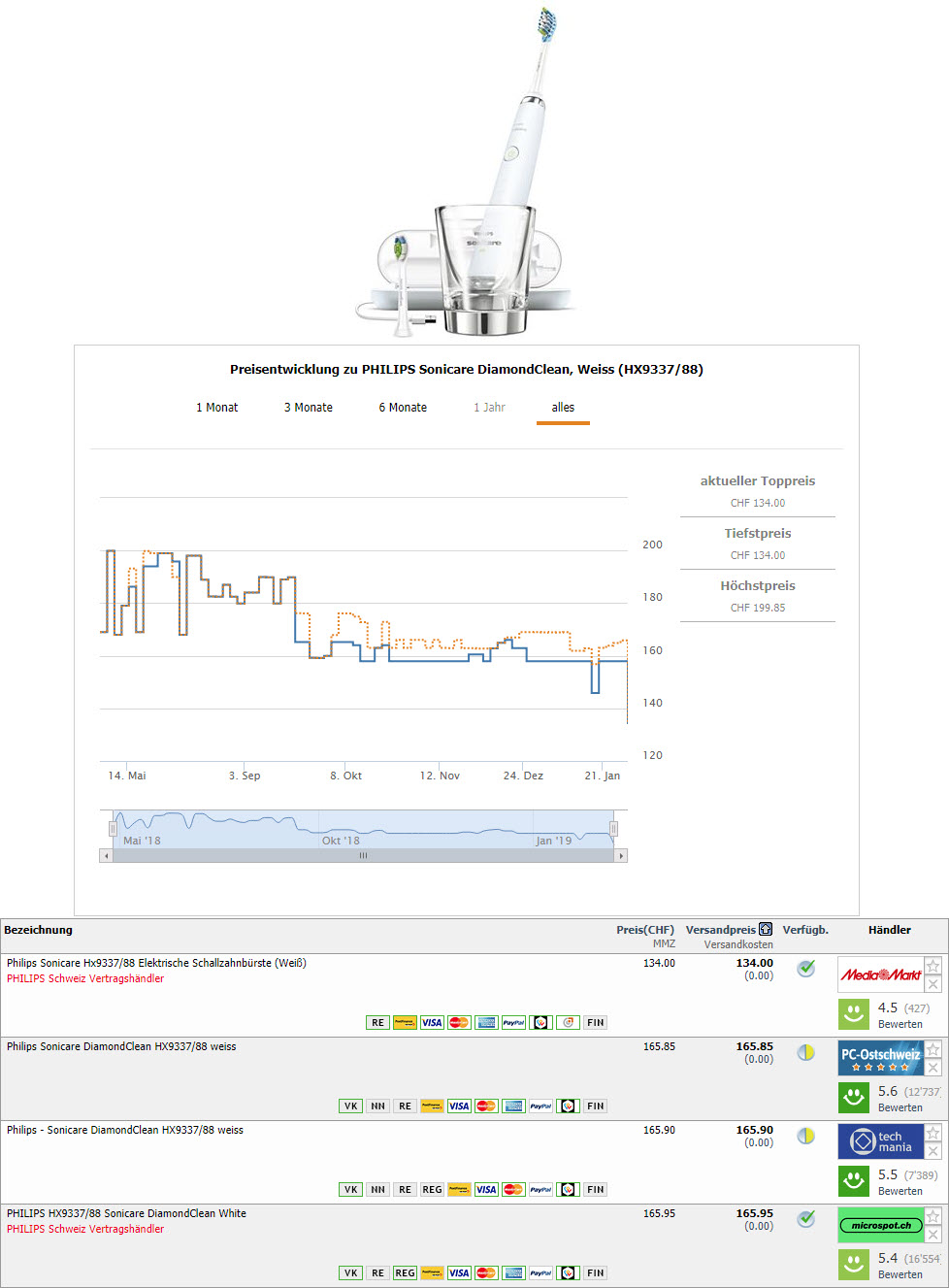 Neu auch die PHILIPS Sonicare DiamondClean (HX8492/01) für 134.- CHF