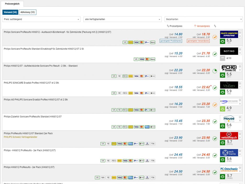 Bei philips.ch gibts zurzeit das 2er-Pack an Standard-Bürstenköpfen HX6012/07 für Philips Zahnbürsten zum Aktionspreis von 12 Franken. Um auf den Dealpreis zu kommen müsst ihr den 20% Gutschein aus der Newsletter-Anmeldung anwenden. Die Lieferung erfolgt gratis.